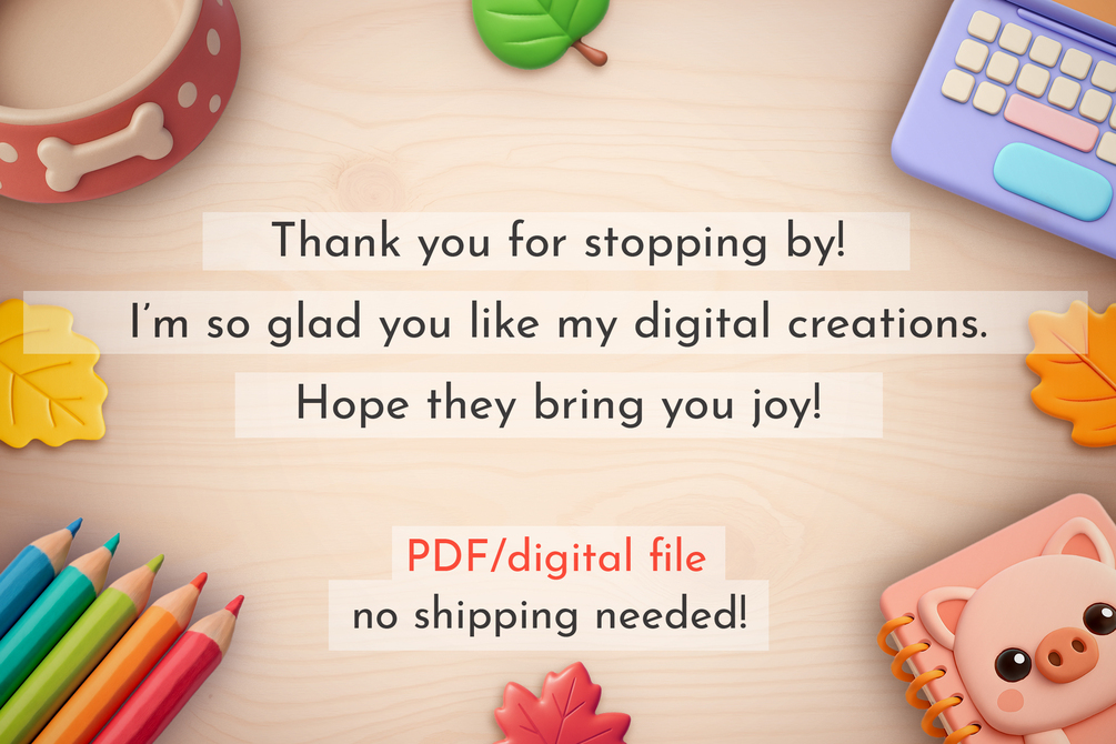 This is a digital product—no physical item ships. Files are for personal use only. Instant downloads cannot be refunded.